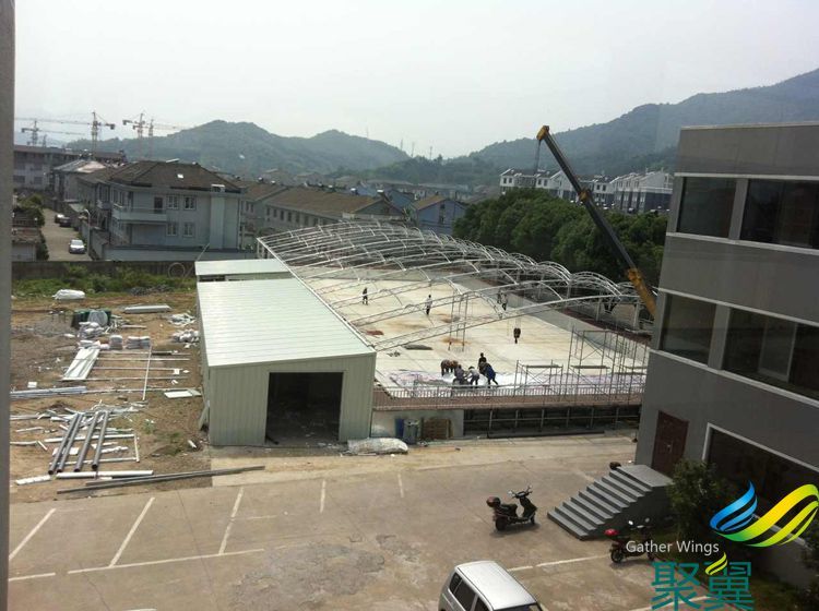 寧波泳池膜結構于2014.6.10順利完工,露天泳池遮陽膜結構施工周期20天。防潮防濕,有效遮阻擋90%的紫外線。室外建設周期短,時尚美觀具有地標性等特點,耐用(膜布面料壽命8年以上)是建筑中的明星。