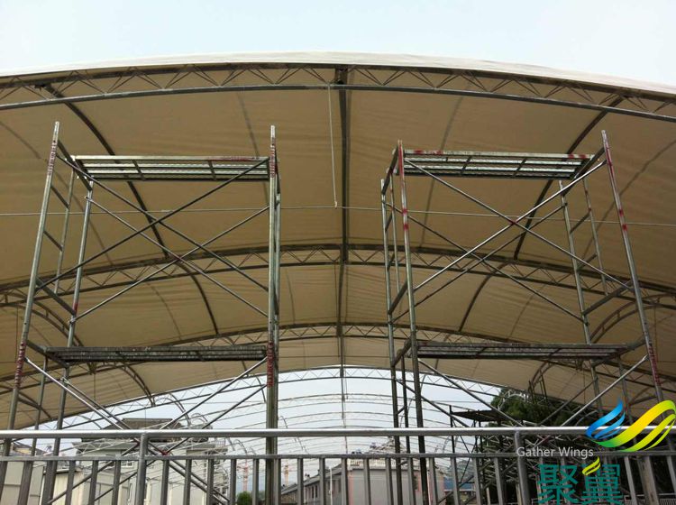 游泳池膜結構防潮防腐遮陽效果好,是夏季休閑的的必備建設之一:膜布安裝見下圖