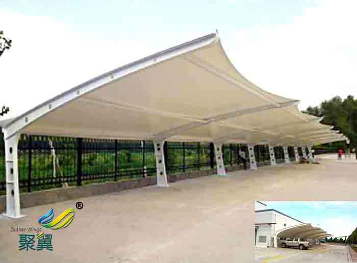 白天,陽光透過膜面使建筑物內充滿夜自然漫射光。夜晚,室內燈光透過膜面給空增添了夢幻般的夜景。當膜結構用于體育館、娛樂設施時,工廠汽車停車棚可以實現全天內的舒適相結合的理想的商業空間。