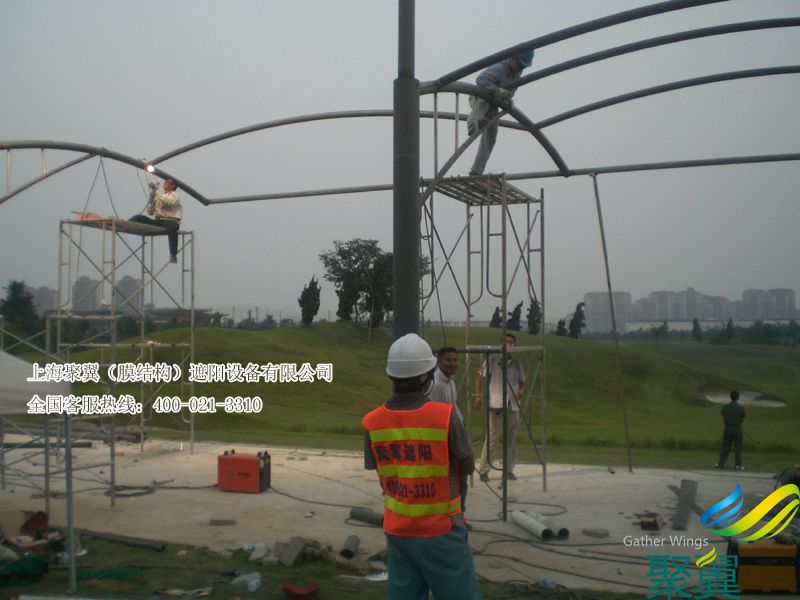 詳細>>昆山太陽島高爾夫發球場練習場的膜結構看臺雨篷制作由上海聚...