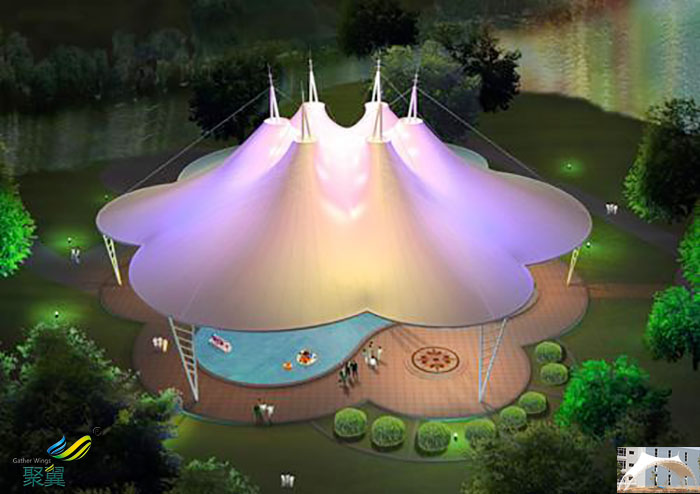 1.舞臺膜結構的共同曲面的外形是使其具有激烈的雕塑感,膜面依靠預張力形態達到穩定性。