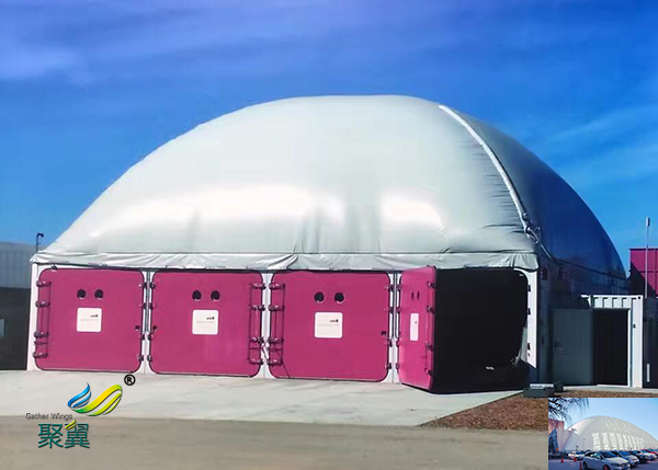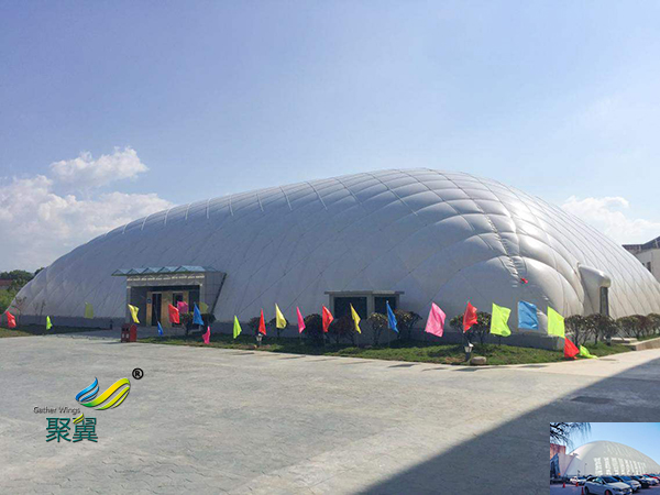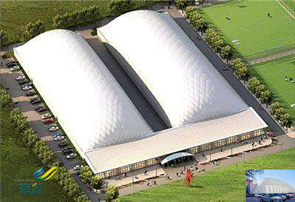 充氣膜結構有單層、雙層、氣肋式三種形式,充氣膜結構一般需要長期不間斷地能源供應。低拱、大跨建筑中的單層充氣膜結構必須是封閉的空間,并保特一定的室內外氣壓差。