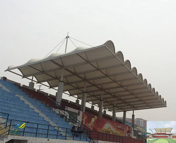 2、膜結構體育看臺建造施工工期短,膜結構加工制造都是在工廠內完成的,縮短了施答工時間,從而也為企業節省了施工成本。
